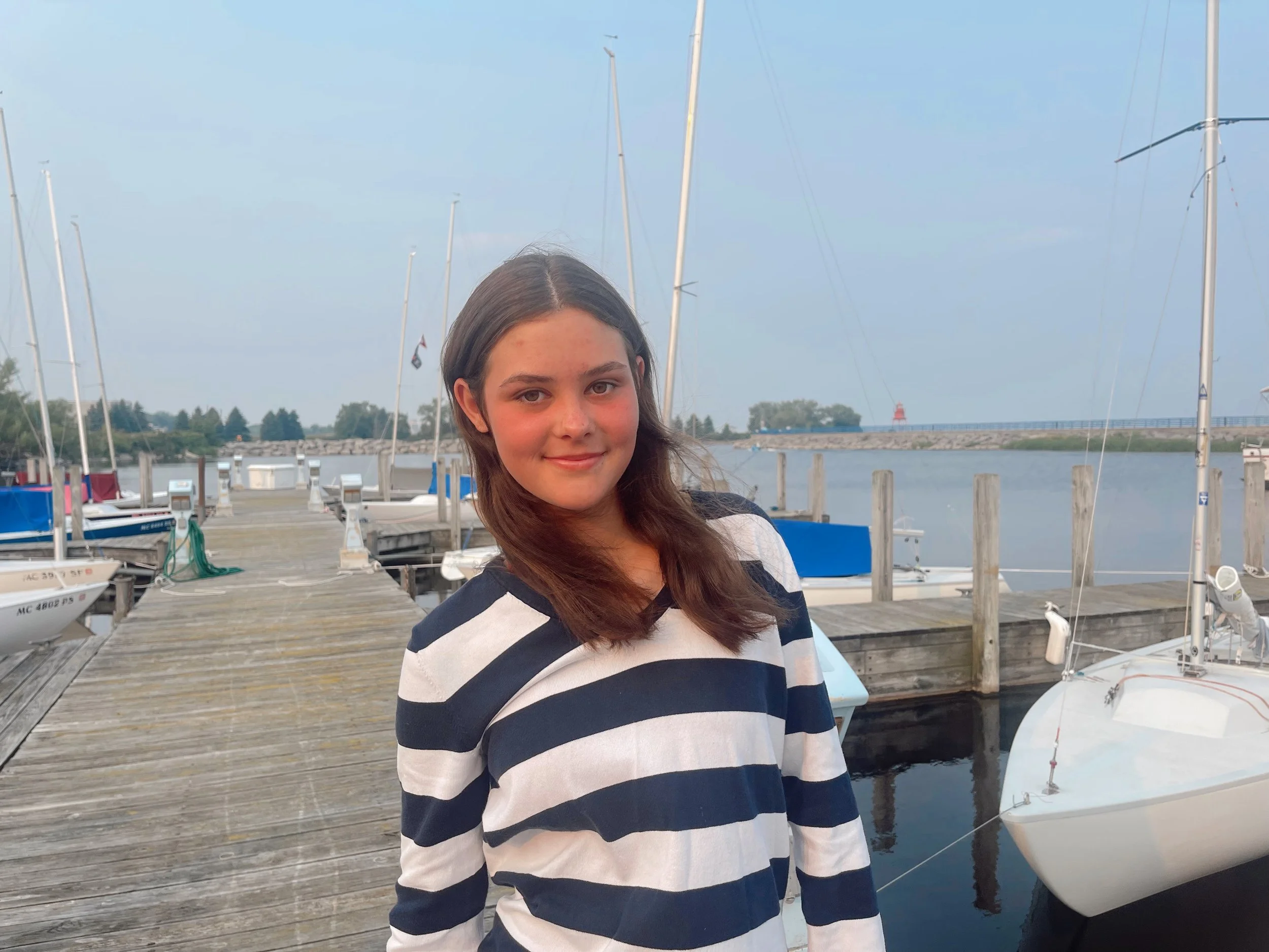 Hey my name is Evelyn! This is my 9th year sailing. I’m from Williamston Michigan. I am in cross country and track. In my free time I enjoy running, playing with my dogs, hanging out with my sisters, cousins, and friends, hiking, swimming, and baking. A fun fact about myself is that I eat ice cream every day during the summer.
